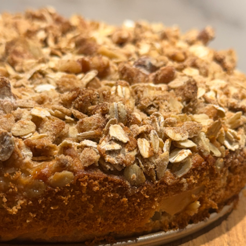 This is our family’s new favorite sweet treat. No refined sugar, just the natural sweetness of apples and honey baked into a tender yogurt batter, finished with a golden oat & walnut crumble. Wholesome, cozy, and beautifully simple.