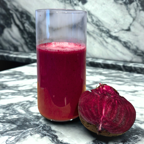 - Beet + banana provides natural sweetness balanced by protein and fat.