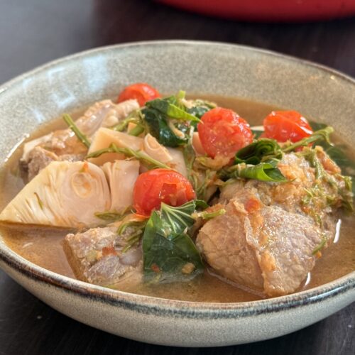 A rustic Northern Thai curry featuring tender pork ribs, young green jackfruit, and fragrant herbs like betel leaves and cha-om. The flavor is savory, aromatic, and full of umami—think of it as Thailand’s answer to a meaty, herbaceous Bolognese, but with a light, brothy twist. Comforting and deeply flavorful, this dish will transport you straight to a Northern Thai kitchen. Maybe it’s time to take a trip to Thailand—one cozy bowl at a time.