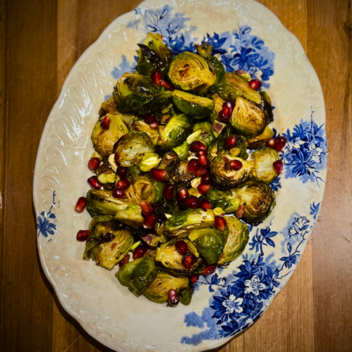 A simple, colorful side that turns humble Brussel sprouts into something special. Crispy, sweet, and just a little spicy. Perfect for your table all year round.